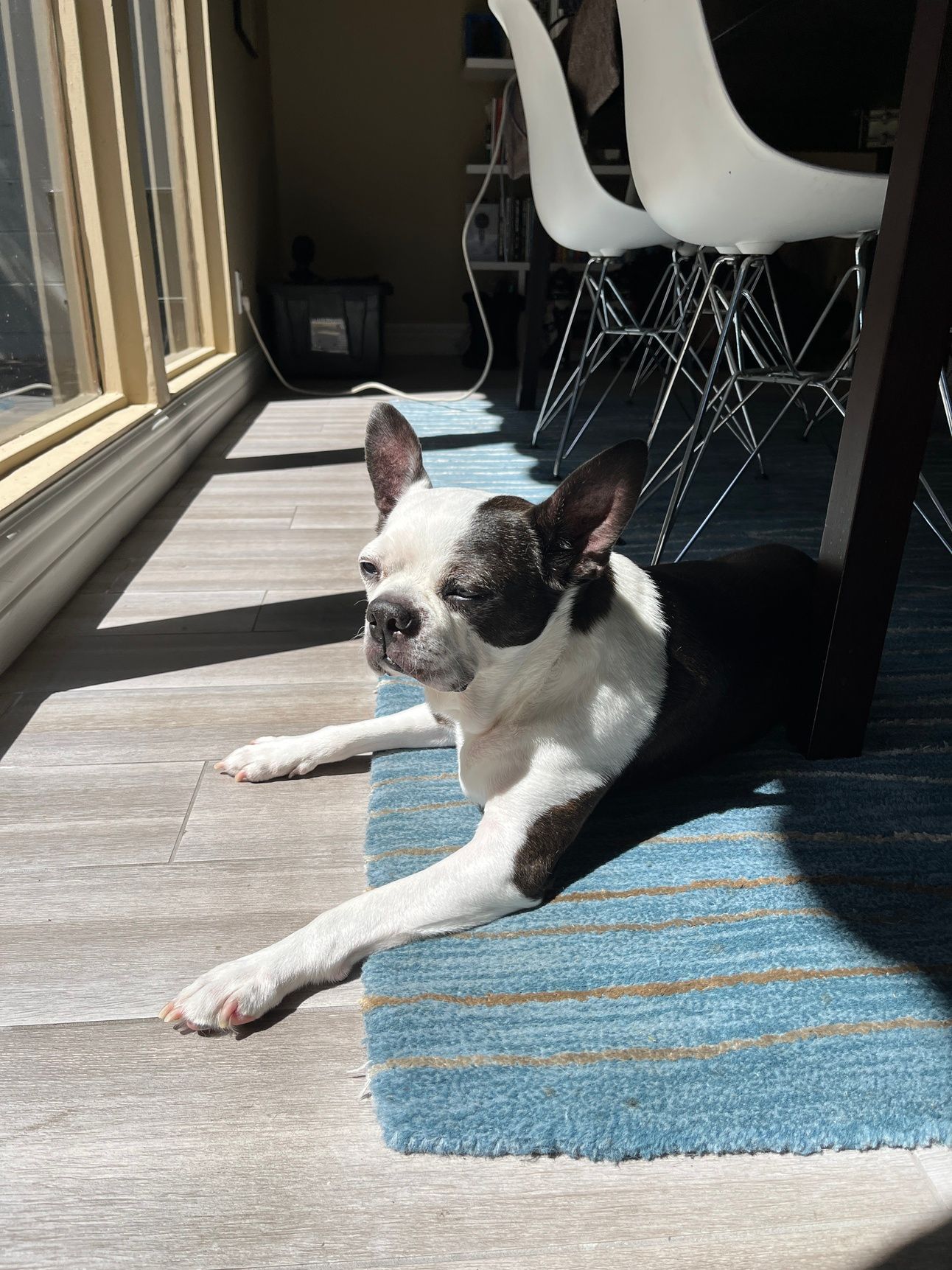 We don’t know exactly how old he was or anything about his backstory. We don’t even know his actual name — Baxter was the one they gave him at the shelter where he came in as a stray, and we thought it suited him as the proper gentleman that he was, so we kept it. We adopted him from Boston Buddies, the Boston terrier rescue group in Southern California, which works tirelessly to get these dogs fixed and treated before matching them with the right homes. This was back in May 2020, at the start of the pandemic, when people stuck at home with extra time on their hands were clearing out the shelters. It was really hard to find a dog to adopt or even foster back then. But the folks at Boston Buddies already knew us from our previous Boston, Boss, and thankfully they thought we’d be a good fit for Bax, too.