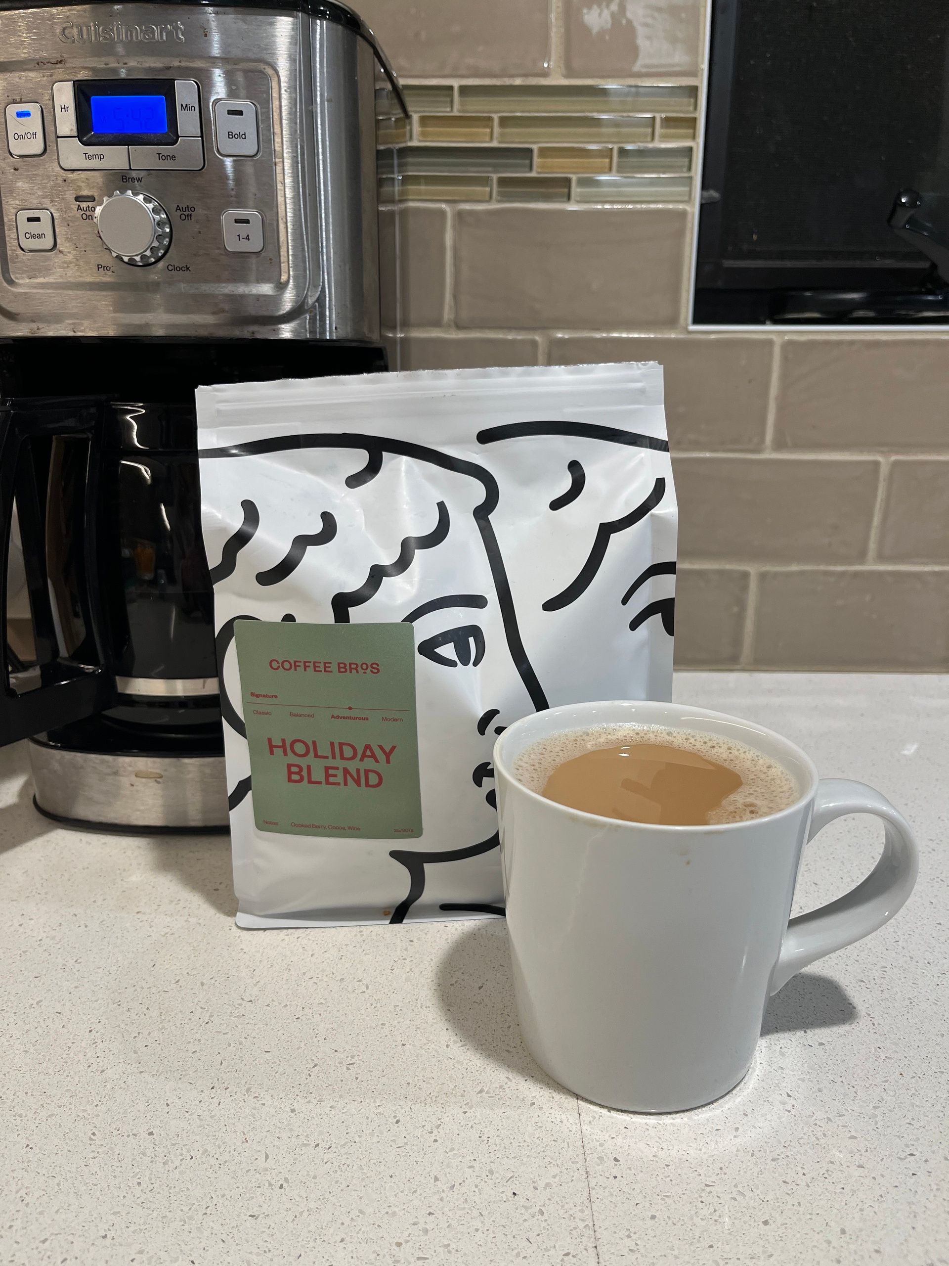 The Holiday Blend is back at Coffee Bros.! This is my favorite and I always stock up on bags to give as gifts to mom friends, Nic’s teachers and coaches and more. This medium roast has notes of berry, cooked orange and chocolate. Now it feels like Christmas. Save 15% with our code BREAKFAST15.